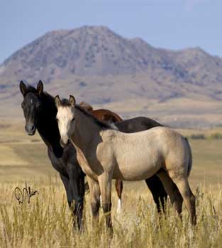 The horses are raised "out" they have about 260 acres to run and learn how to navigate all obstacles in nature. They are exposed to trees, water, mud, rocks, wildlife and the ups and downs of steep canyons. They are easily broke to trail because they are already familiar with nature. They grow up healthy, sound, strong and sane and have learned herd discipline. In these large pastures ALL of the horses are sociable and very friendly to their human visitors.